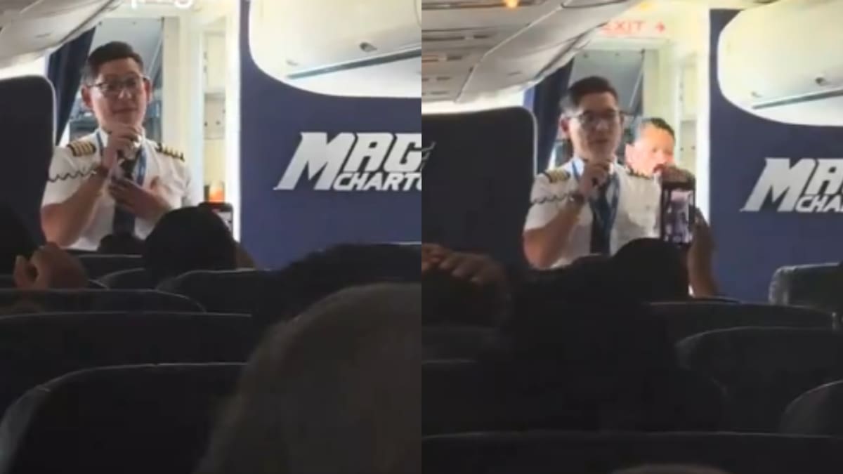 Se trató del vuelo 780 de la aerolínea Magnicharters. Un miembro de la tripulación empezó a explicar la situación. Se supo que al piloto y a más de 300 trabajadores les deben 5 meses de sueldo y aguinaldo.