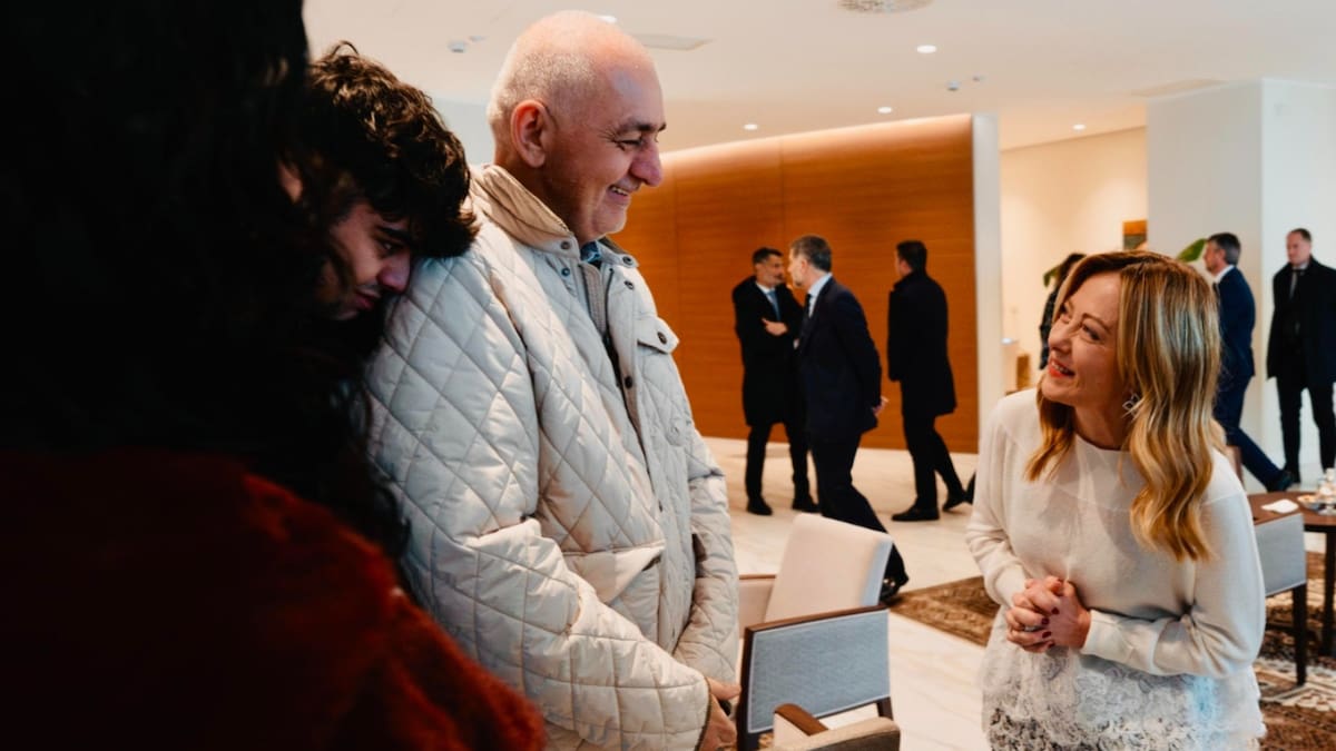 La primera ministra italiana, Giorgia Meloni, recibió este martes en el aeropuerto de Ciampino, en Roma, a los dos ciudadanos italianos excarcelados en Venezuela, el cooperante Alberto Trentini y el empresario Mario Burlò.