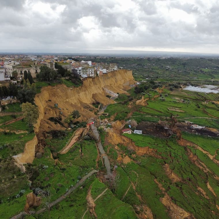 Las impactantes imágenes de edificios suspendidos al borde de un gran desnivel recorren Italia después de que una extensa porción de terreno colapsara tras varios días de intensas lluvias, lo que obligó a evacuar por completo a un barrio entero.