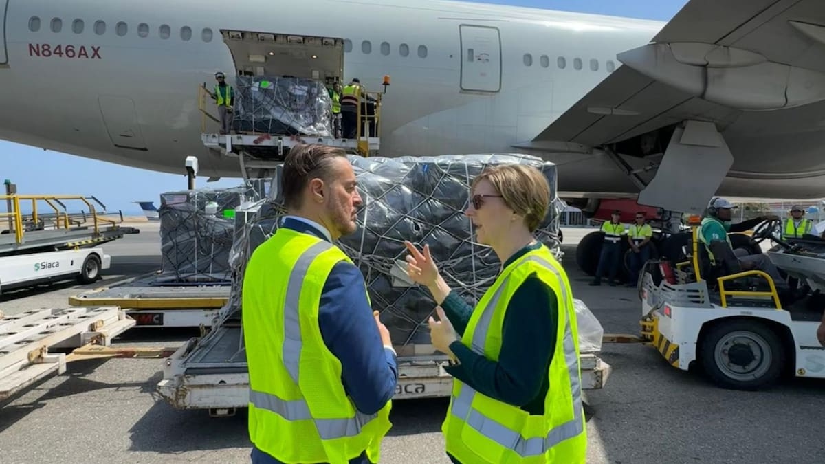 “¡Otro día productivo aquí en Caracas! Hoy facilitamos la entrega de más de 6.000 kilos de medicamentos para apoyar la recuperación del pueblo venezolano”, dijo Dogu en un mensaje en X que acompañó con fotografías de un avión de carga y cajas forradas de negro con la bandera de Estados Unidos.