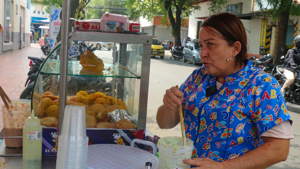 Con dos termos bajo el brazo y varios vasos de plástico en la mano, recorre las calles ofreciendo “tinto” (café) a conductores y transeúntes para sacar adelante a su familia.