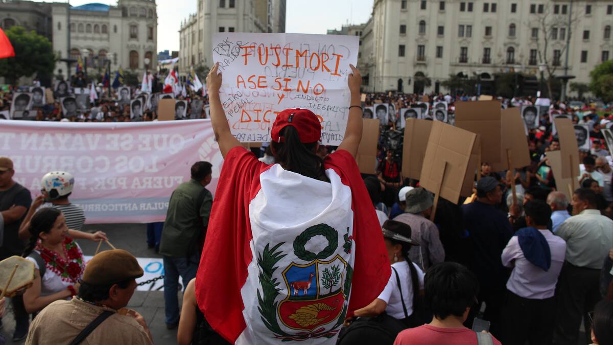 Miles de personas se manifestaron este lunes en las principales ciudades de Perú para protestar por el indulto concedido por el presidente del país, Pedro Pablo Kuczynski, al exmandatario Alberto Fujimori, que le exime de terminar de cumplir una condena de 25 años de prisión por violaciones de los derechos humanos.