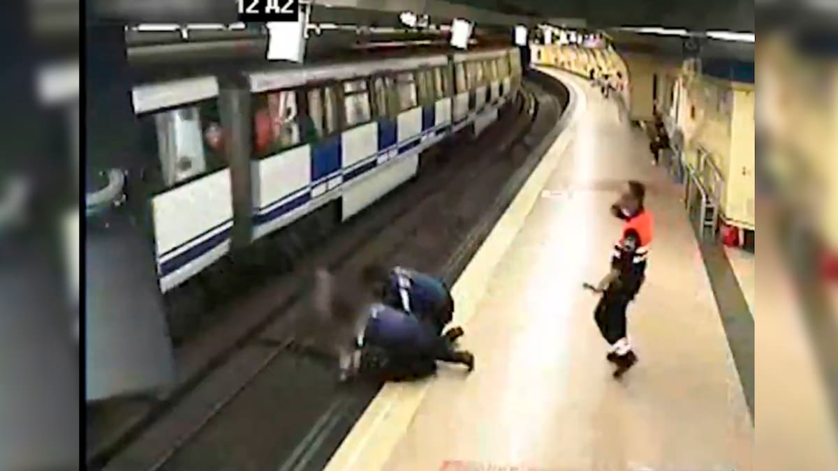 Gracias a la acción inmediata de dos policías en Madrid, España, una mujer fue rescatada de las vías del metro en la estación de Lavapiés.