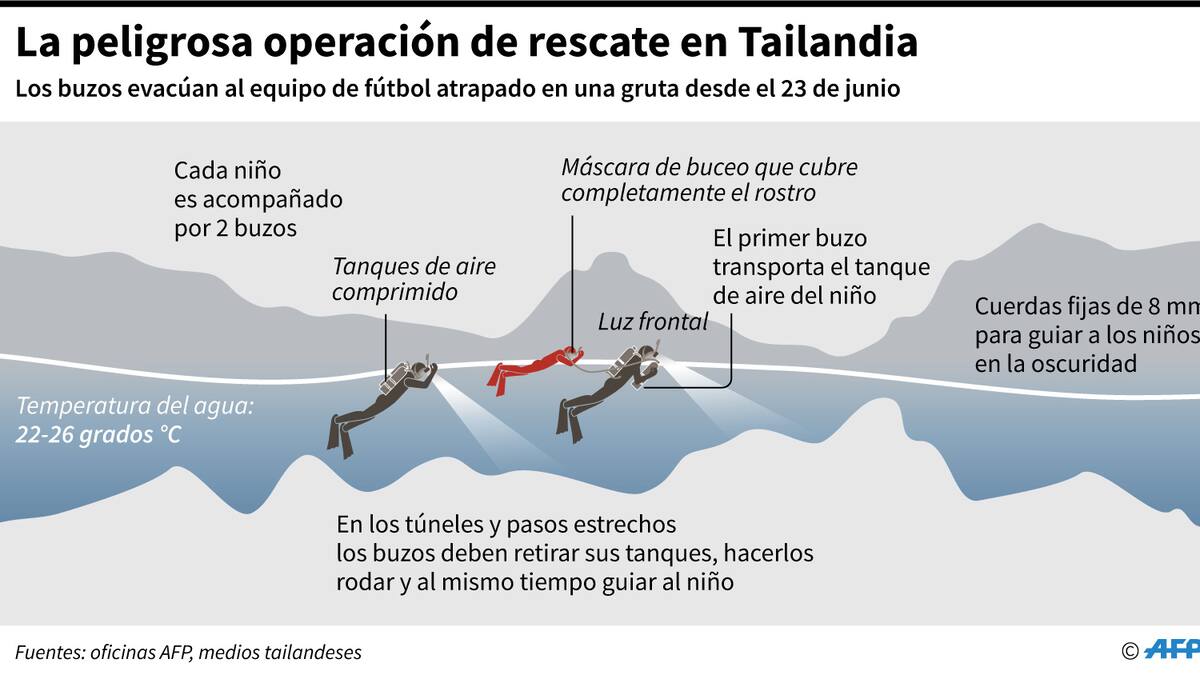 Esta semana se reveló que a un buzo experimentado le tomaban 11 horas ir y venir al lugar donde están los niños: seis horas de ida y cinco de vuelta gracias a la corriente.