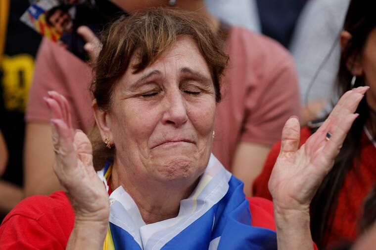 Los manifestantes lanzaron hurras, aplausos y gritos de "independencia", para inmediatamente después entonar con fervor el himno de Cataluña, muchos con el puño en alto.