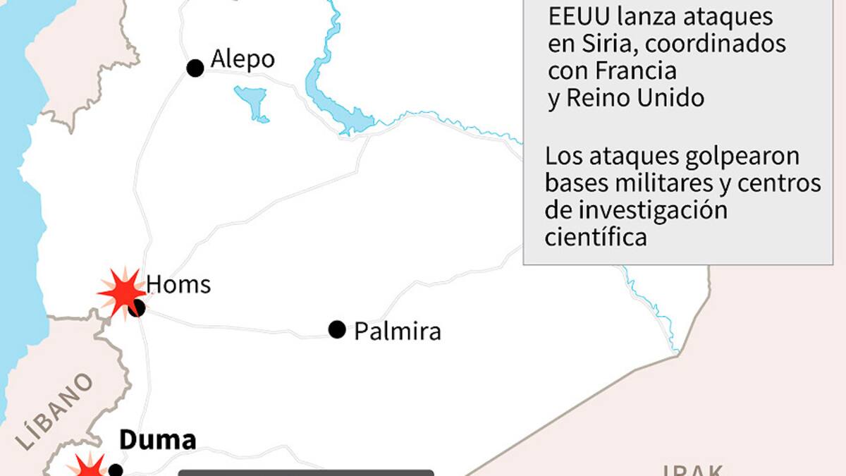 Los medios estatales sirios denunciaron este sábado la operación militar conjunta de Estados Unidos, Francia y el Reino Unido contra el gobierno de Damasco y afirmaron que estos ataques son ilegales y están 'destinados a fracasar'.