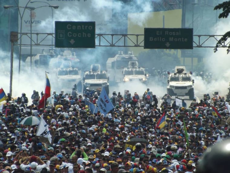 EFE constató que efectivos de la Guardia Nacional Bolivariana (GNB, Policía militarizada) y de la Policía Nacional Bolivariana usaron gases lacrimógenos y dispararon perdigones contra los manifestantes que protestaban pacíficamente en una zona de Caracas hasta la llegada de los efectivos, y detuvieron a una veintena de ellos.