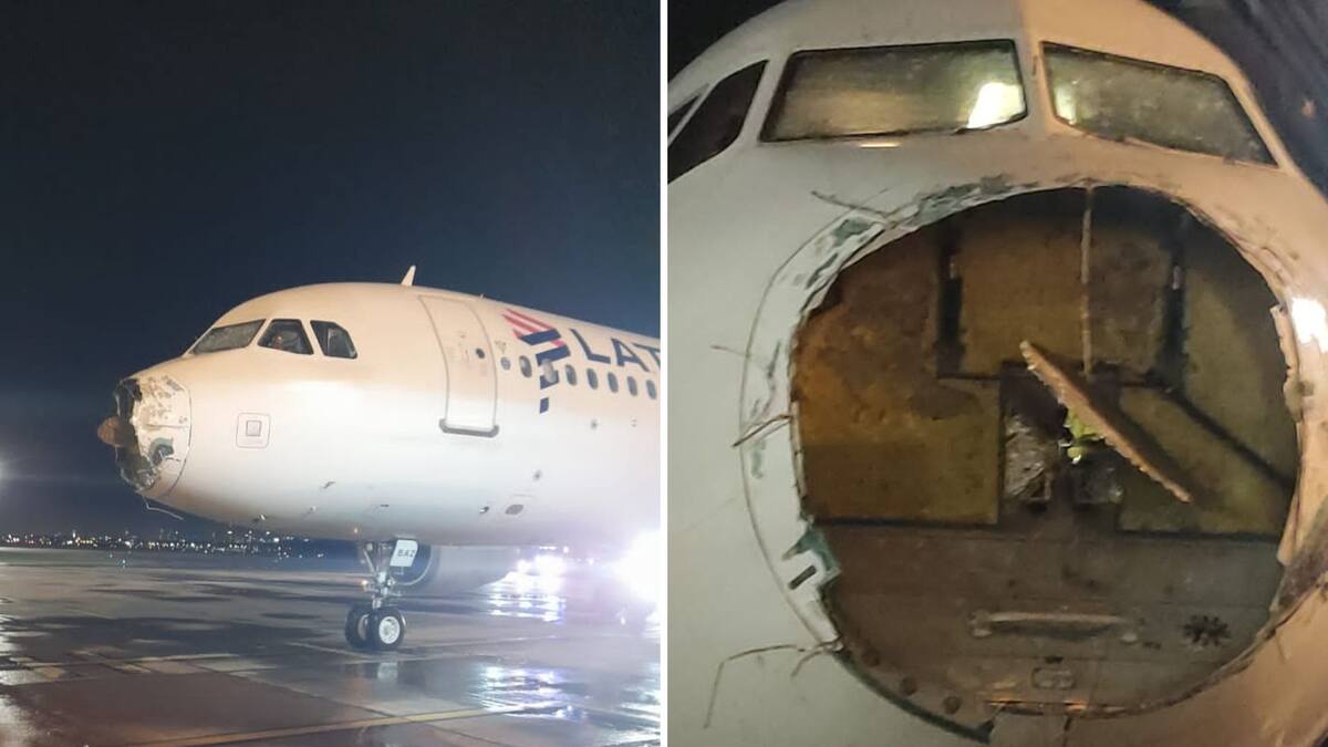 El hecho que sucedió este miércoles 26 de octubre ocasionó que el avión resultara afectado en la parte delantera y el motor. En imágenes que fueron difundidas a través de redes sociales, se logra apreciar que a la aeronave se le destruyó la nariz y terminó con varios vidrios rotos, incluso, el de la cabina del piloto.