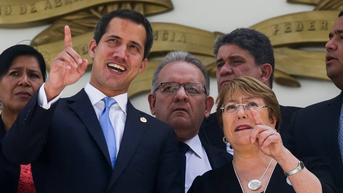 Guaidó dijo que además dialogó con Bachelet sobre la 'persecución' al Legislativo, varios de cuyos miembros son procesados por un presunto atentado y un fallido alzamiento militar contra Maduro, y que la comisionada prevé dejar a dos delegados suyos en Venezuela durante tres meses.