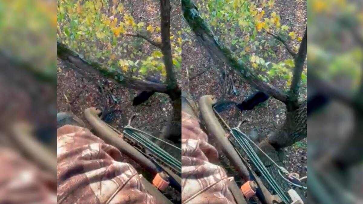 Para disfrutar de sus descansos, el jugador utilizó una de las tardes para salir a cazar ciervos. En el bosque, se subió a un árbol para tener una mejor vista, sin embargo, de un momento a otro vio a un osos negro merodeando por la zona.