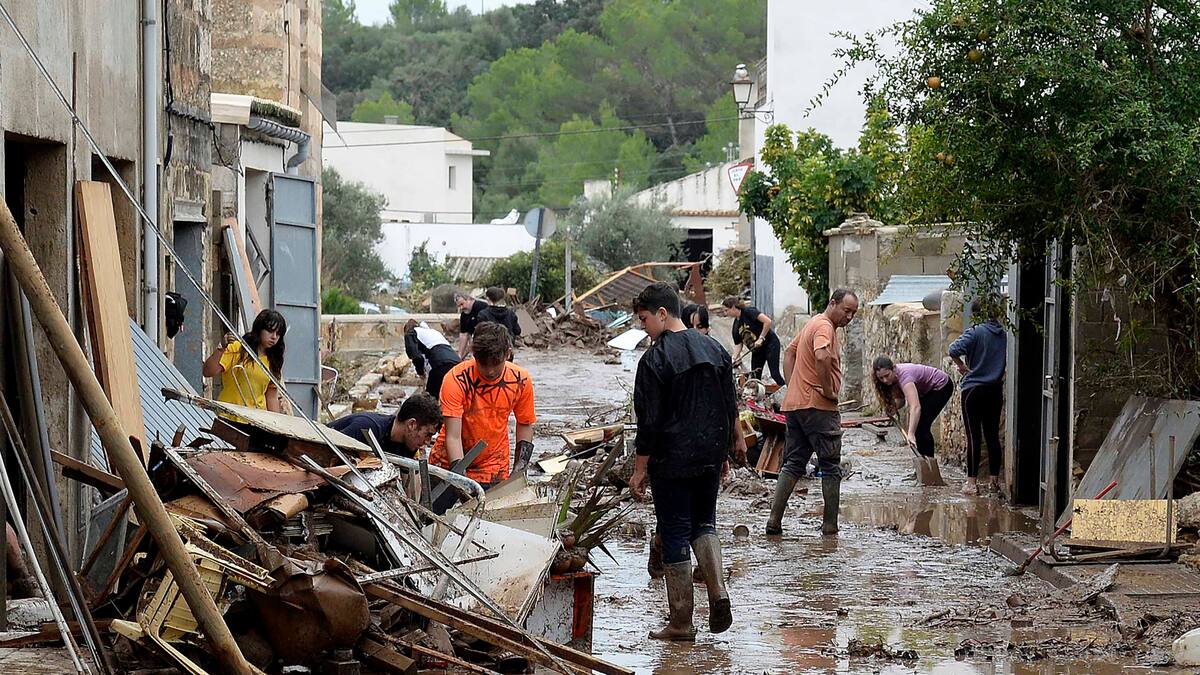 En Sant Llorenç, los daños son omnipresentes. En medio del vaivén de vehículos de la Unidad Militar de Emergencias, los vecinos achican con escobas el agua entrada en sus viviendas, o tratan de arrancar el espesísimo barro con mangueras.