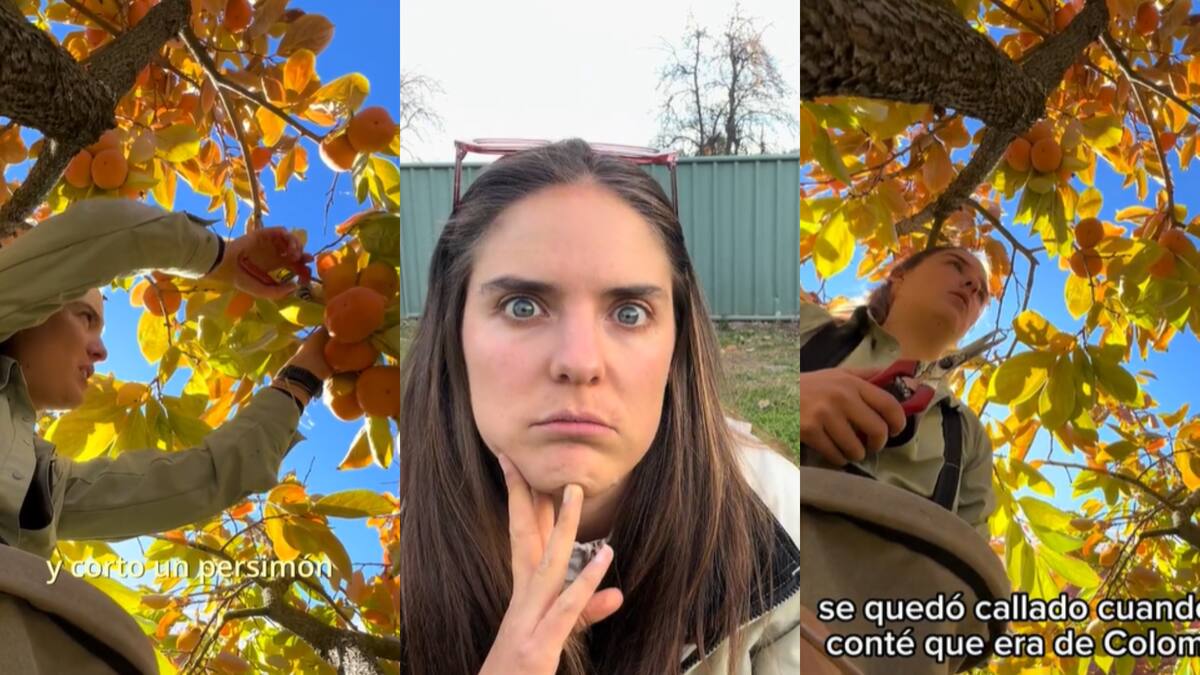 Ella inició describiendo en su cuenta de TikTok, que inició muy contenta su jornada de trabajo, en una granja que cultivan persimones, un fruto conocido en otras regiones como Caqui o palosanto, que es característico por su color anaranjado o rojizo.