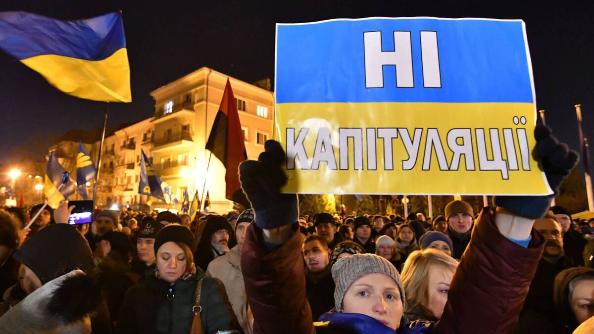 Unas 200 personas pasaron la noche en tiendas de campaña frente al edificio presidencial en Kiev, exhortando a Zelenski a no 'capitular'. El domingo, fueron 5.000 los que manifestaron en el centro de la capital ucraniana bajo el mismo lema.