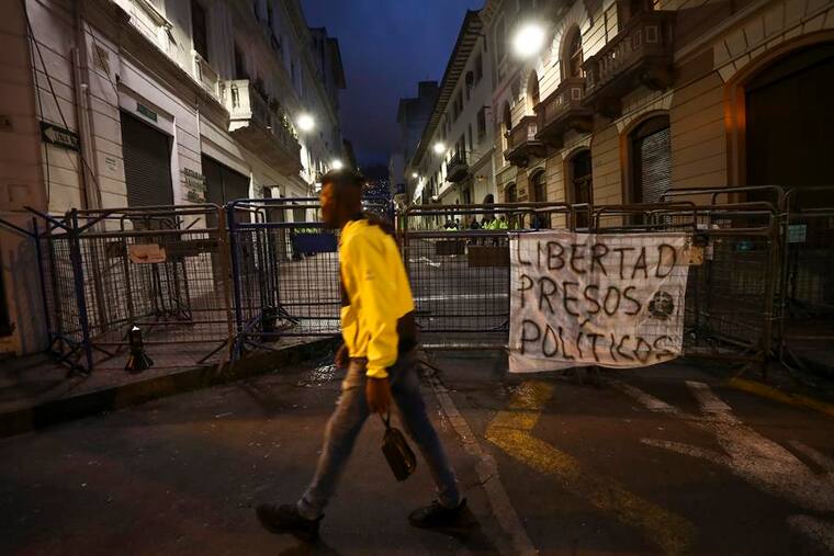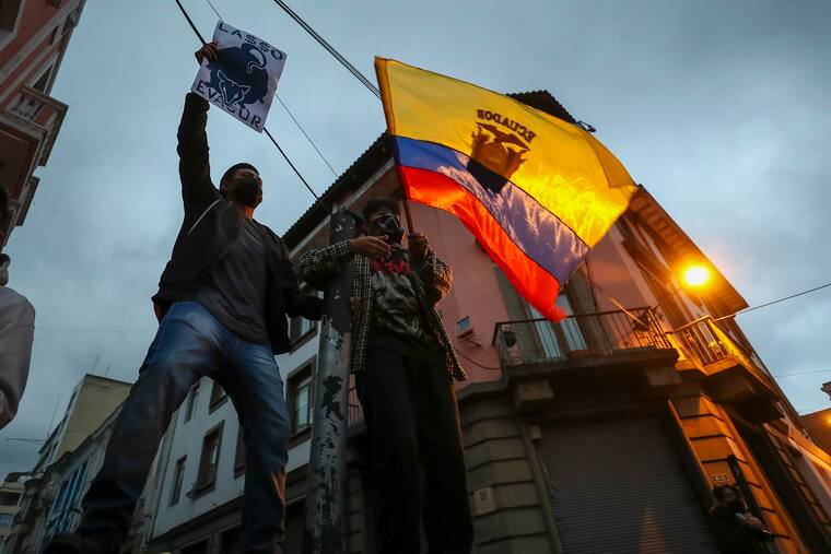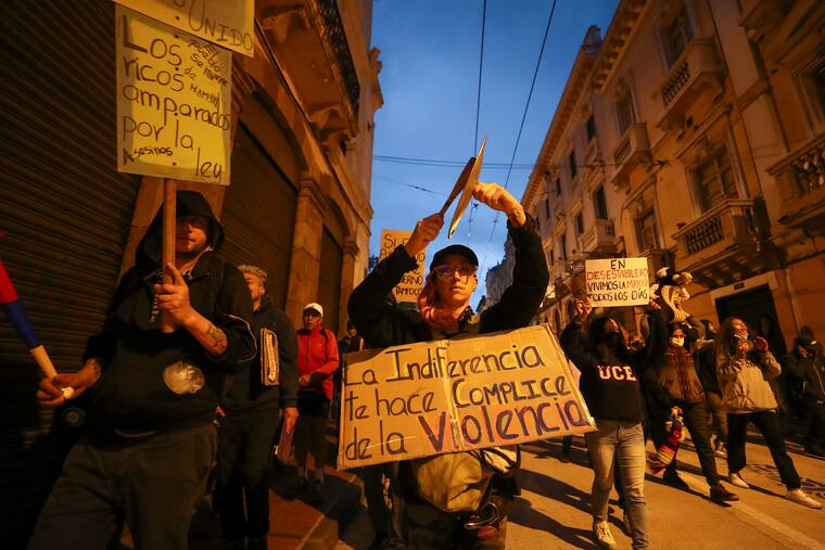 Estudiantes, sindicatos y campesinos protestan hoy contra el Gobierno de Guillermo Lasso, en Quito, Ecuador.