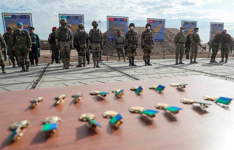 Más de tres mil militares de Rusia, India, China, Pakistán, Tayikistán, Uzbekistán, Kazajstán, Kirguistán participan en el ejercicio.