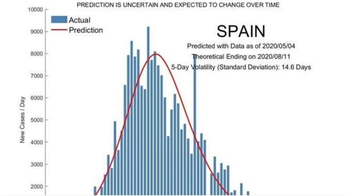La pandemia de coronavirus acabaría 'teóricamente' en España hacia el 9 de septiembre, según un modelo predicitivo de una universidad de Singapur basado en 'la tendencia actual de casos', el cual considera que el 99 % de los casos podría haberse dado hacia el 22 mayo.