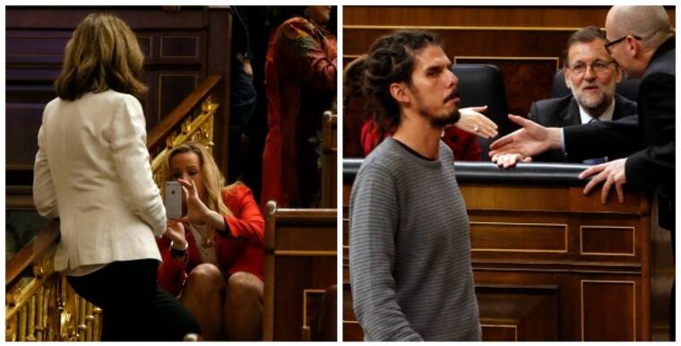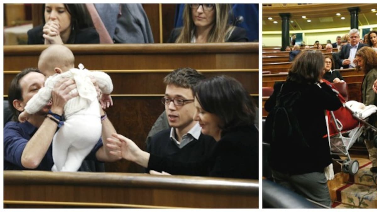 En la sala del pleno se vieron menos corbatas, más mujeres y gente con camisetas y trenzas rasta. La que más llamó la atención fue la diputada de Podemos Carolina Bescansa, que trajo y amamantó a su bebé de seis meses como forma de reivindicar la conciliación entre la vida familiar y laboral, un gesto muy discutido teniendo en cuenta que el Congreso dispone de guardería.