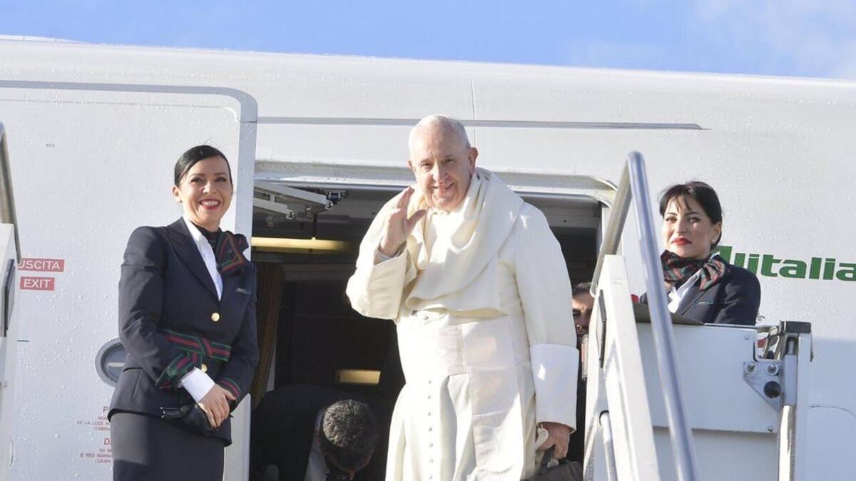 Apenas descendió del avión, Francisco saludó al presidente anfitrión Juan Carlos Valera y tomó un primer auto rumbo a la Nunciatura.