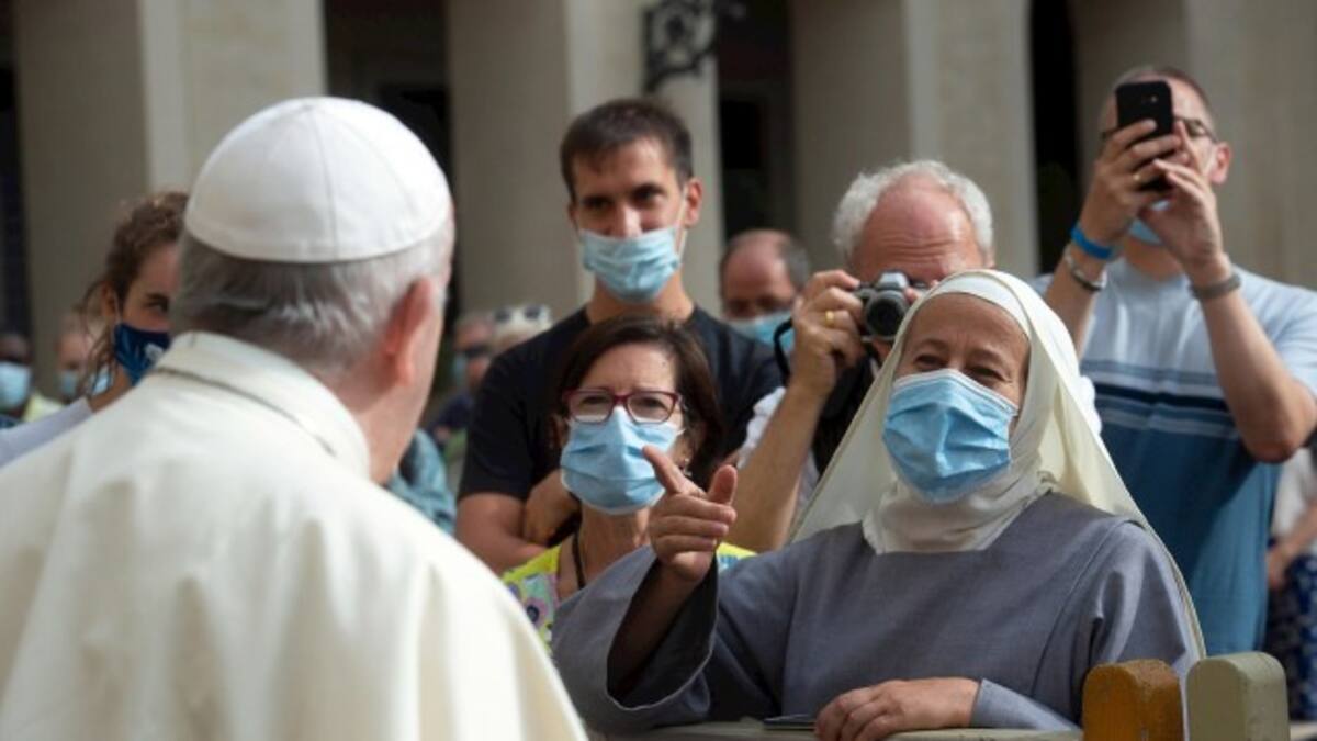Francisco, sin mascarilla, pasó por el pasillo central y se detuvo a hablar animadamente con los ancianos, niños y religiosos, pero no hubo los abrazos y besos de las pasadas audiencias a los que el papa argentino nos había acostumbrado.