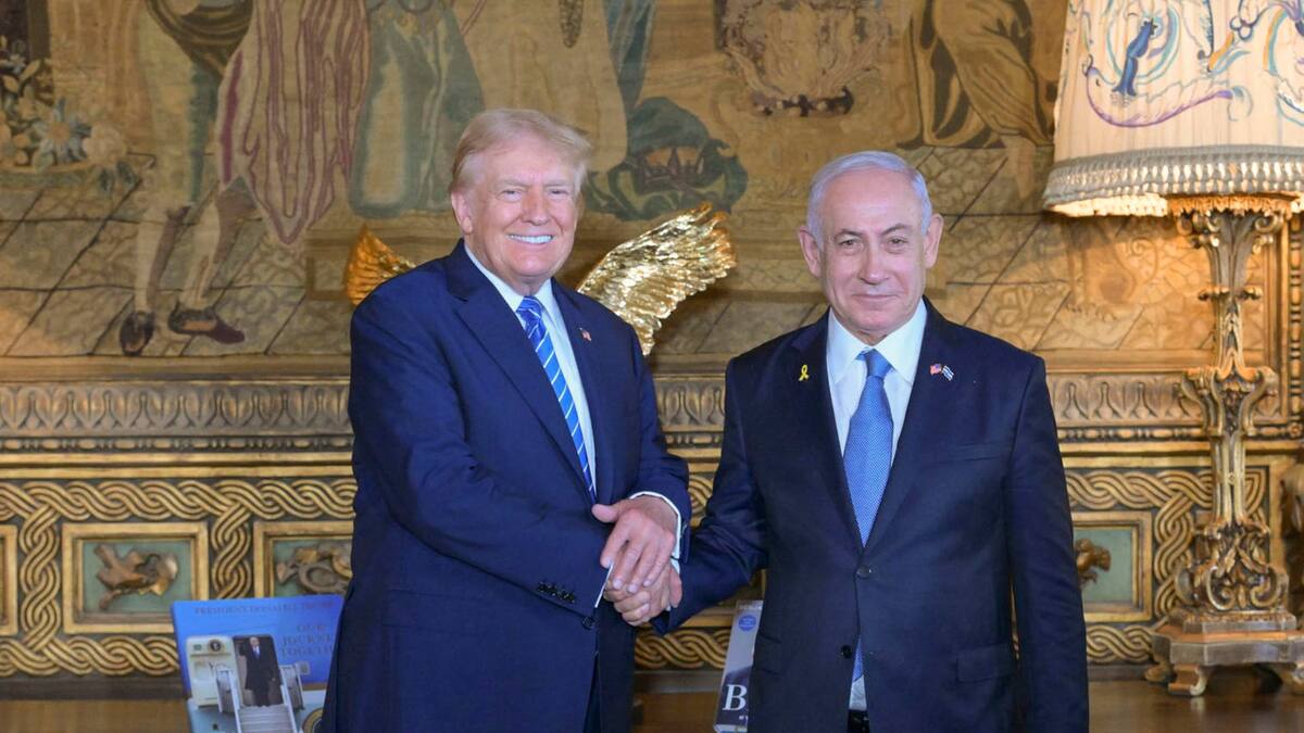 Trump recibió este mediodía con gesto de cercanía al mandatario israelí en la puerta de su mansión y ambos se saludaron dándose la mano con firmeza, para luego pasar al interior, según se observó en un video publicado en redes sociales por miembros de la campaña del expresidente.