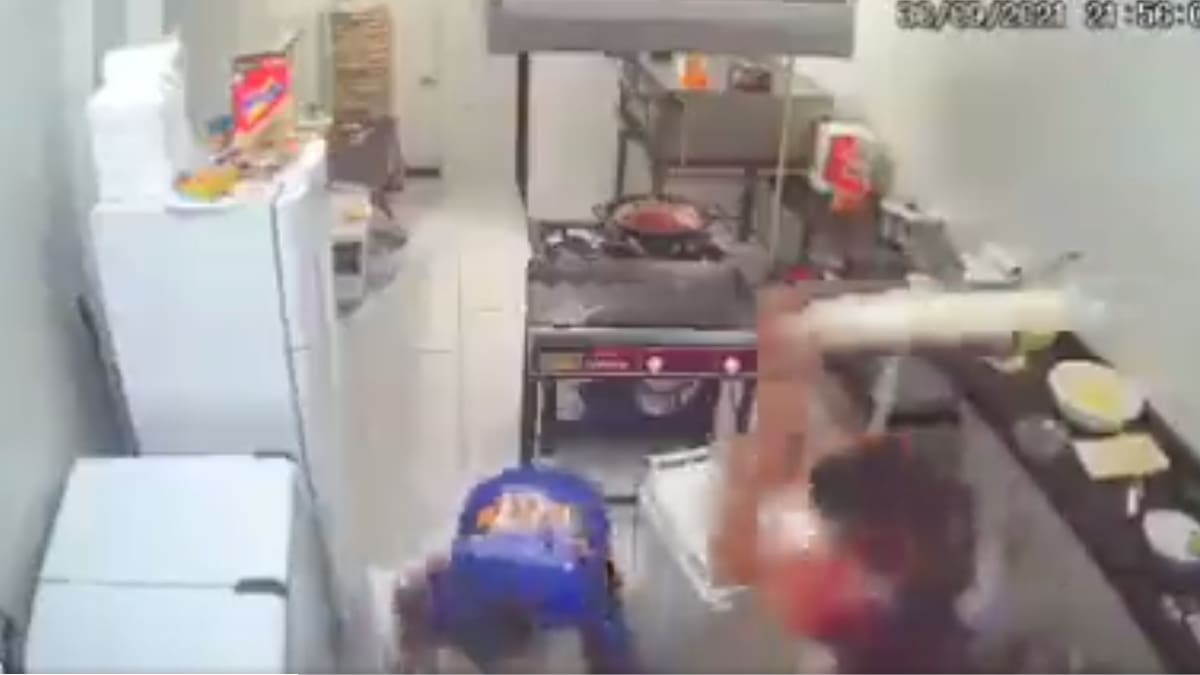 Las cámaras de seguridad del restaurante registraron el hecho que ocurrió el pasado jueves. Al parecer, eran dos delincuentes que habían llegado para robar; uno hurtó a los clientes y otro llegó hasta la cocina.