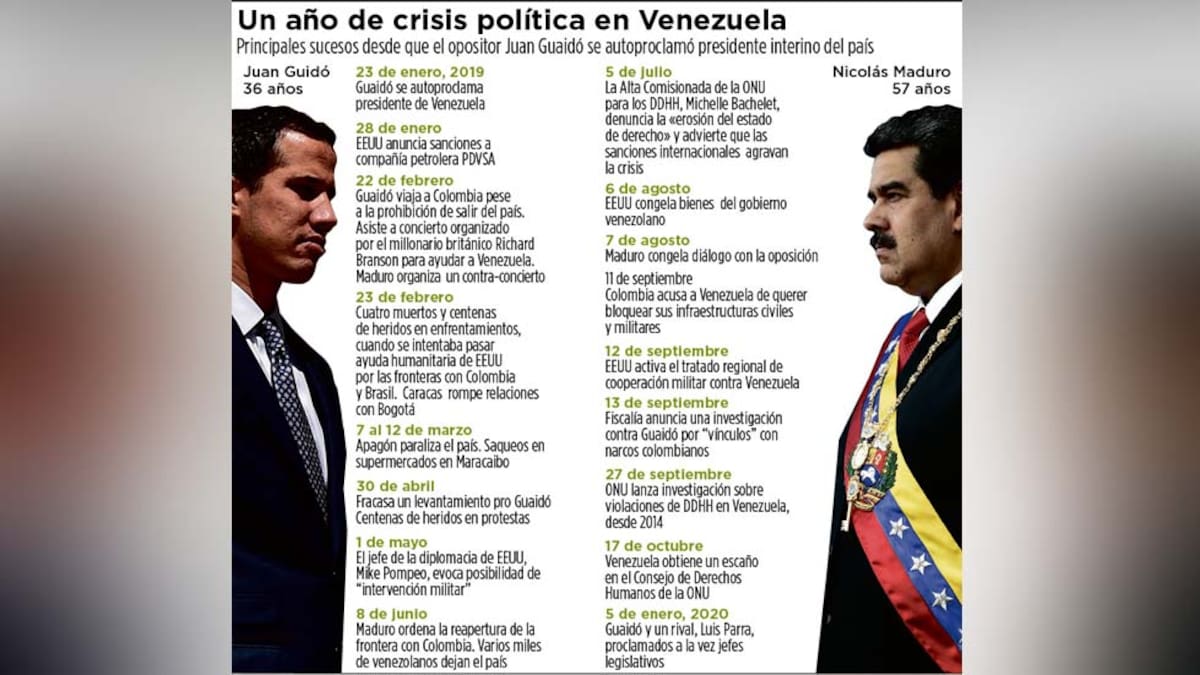 La ruptura institucional se profundiza en Venezuela. Juan Guaidó sigue reivindicando su condición de jefe del Parlamento y presidente encargado con amplio apoyo internacional, mientras un diputado rival fue proclamado líder legislativo y Nicolás Maduro mantiene el control del poder.