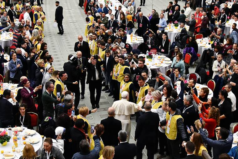 Por tercer año consecutivo y después de celebrar la misa en la Basílica de San Pedro ante miles de fieles, Francisco se trasladó a la sala de audiencias de Pablo VI para compartir la III Jornada Mundial de los Pobres, que la Iglesia Universal celebra este domingo 17 de noviembre. Lasaña, nuggets de pollo con crema de champiñones y papas, postre, fruta y café hicieron parte del menú.