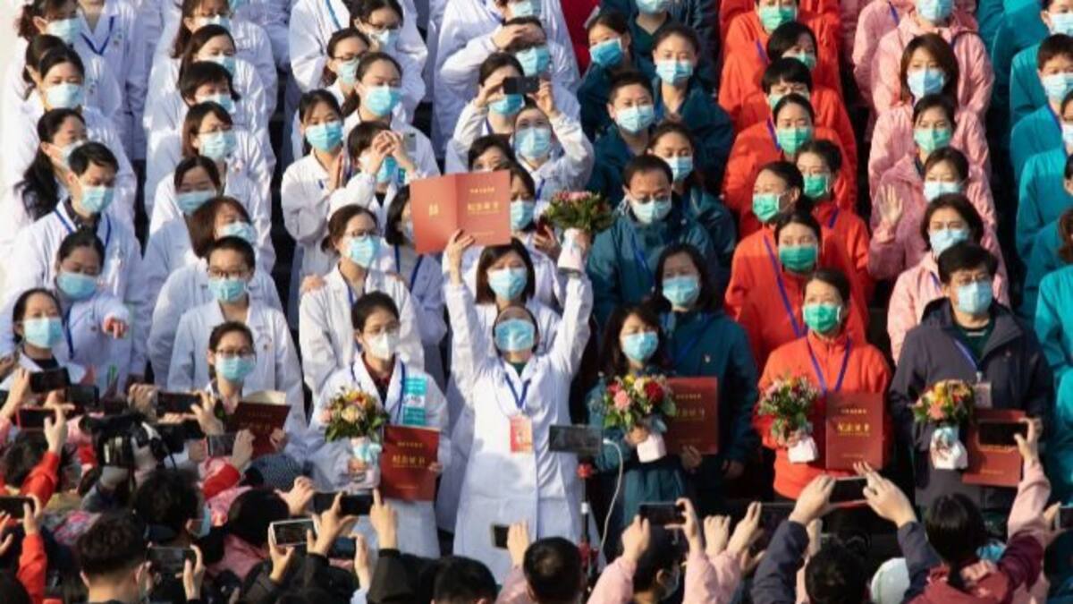 En un video que circula por las redes sociales se logra ver como médicos, enfermeros y asistentes clínicos chinos celebran lo que sería el fin del pico de la pandemia en su territorio, debido a que más de 60 mil pacientes lograron superar la enfermedad.