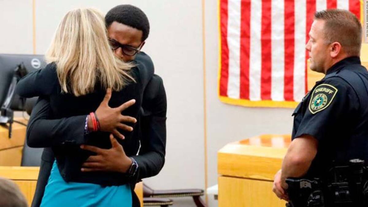 La conmovedora escena ocurrió en el final del juicio de Amber Guyger, una mujer policía blanca de 31 años que en 2018 le disparó en Dallas a su vecino negro, luego de entrar a un apartamento equivocado creyendo que era el suyo.