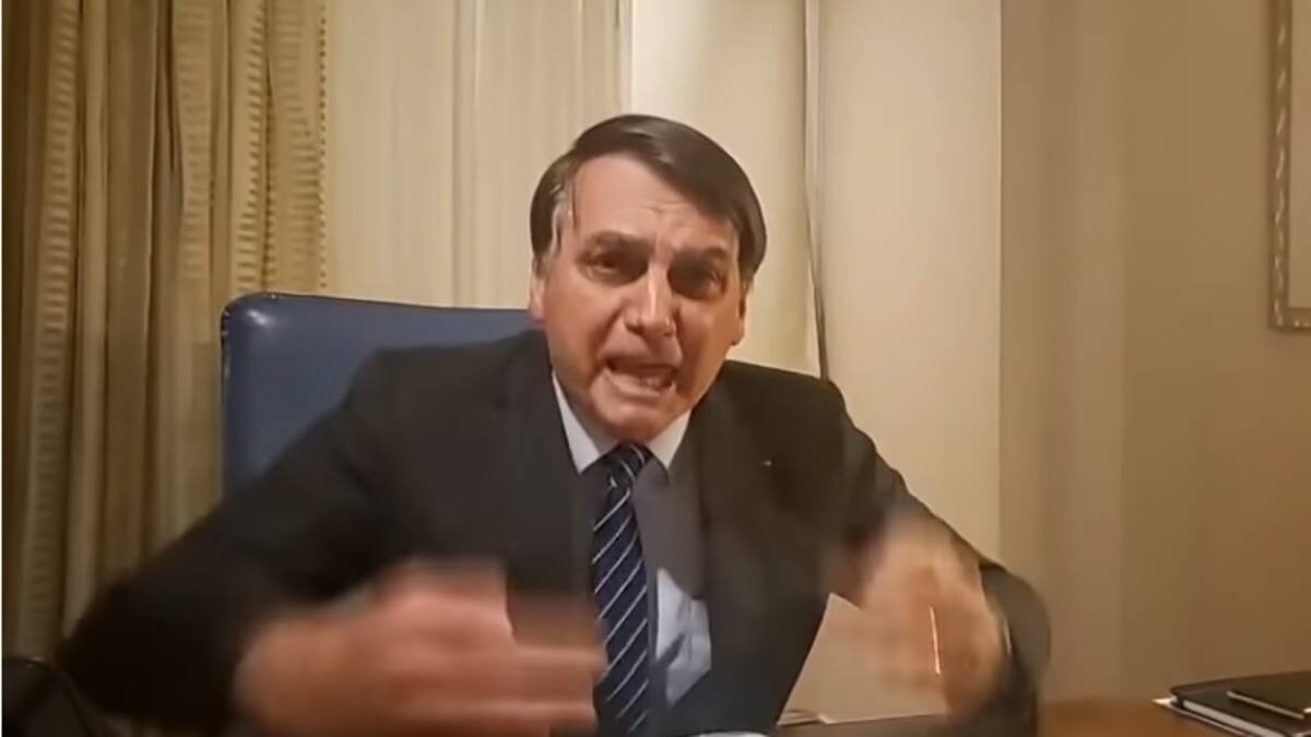 En el video, de casi 24 minutos, Bolsonaro manotea, se pone los lentes, los tira, grita y trata de recuperar la calma cuando se le corta el habla.