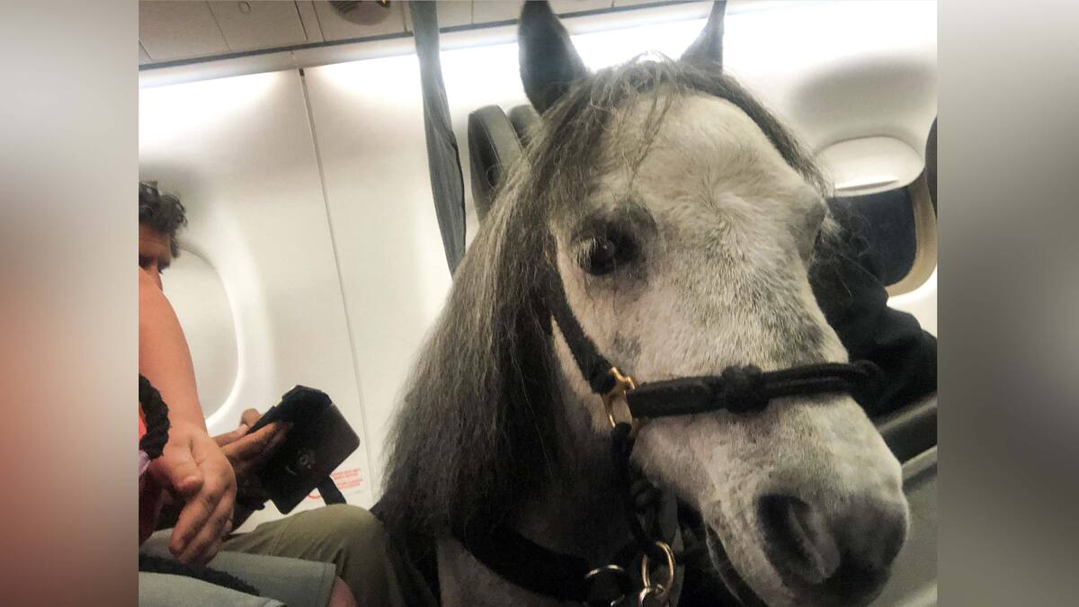 El caballo Flirty, de 7 años y del tamaño de un perro grande, viajó con su dueña, que necesita la presencia de este animal de apoyo emocional a diario para ayudar a controlar sus ataques de ansiedad, explicó la pasajera el lunes en un e-mail a AFP. Por ejemplo, le recuerda que tome sus medicamentos.