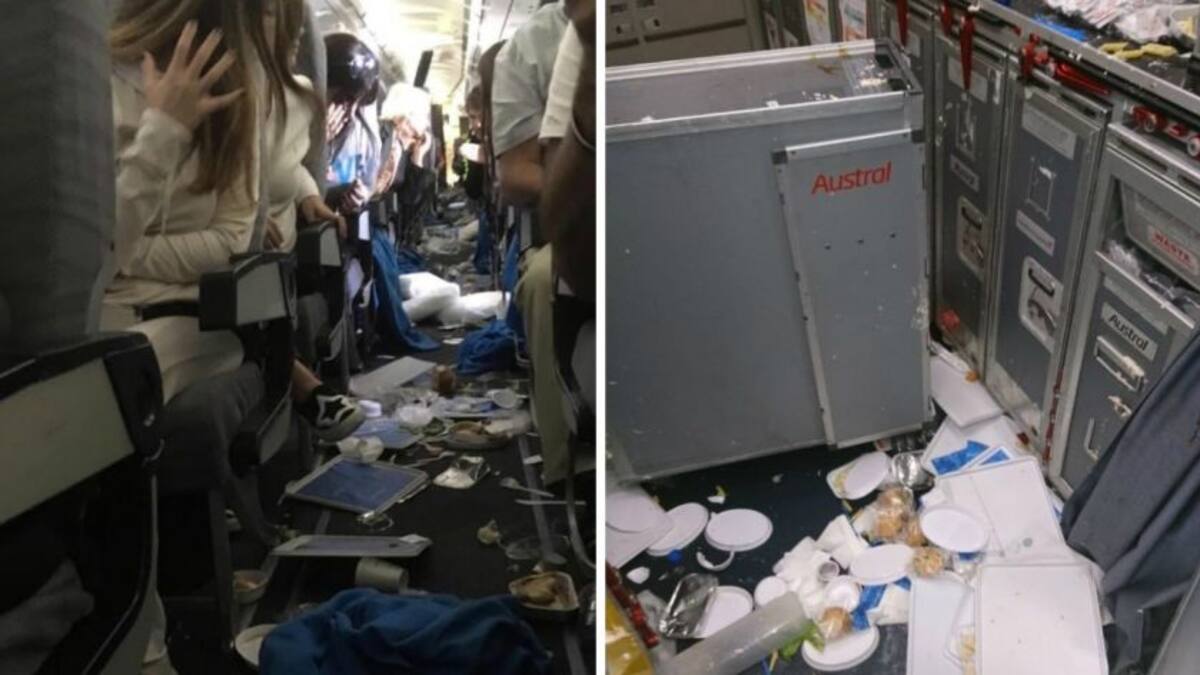 La desesperación de los pasajeros quedó registrada en las fotos y videos que tomaron después de la pesadilla: bandejas de la cena tiradas en el piso, paneles del techo levantados, guardaequipajes abiertos y manchas de sangre.