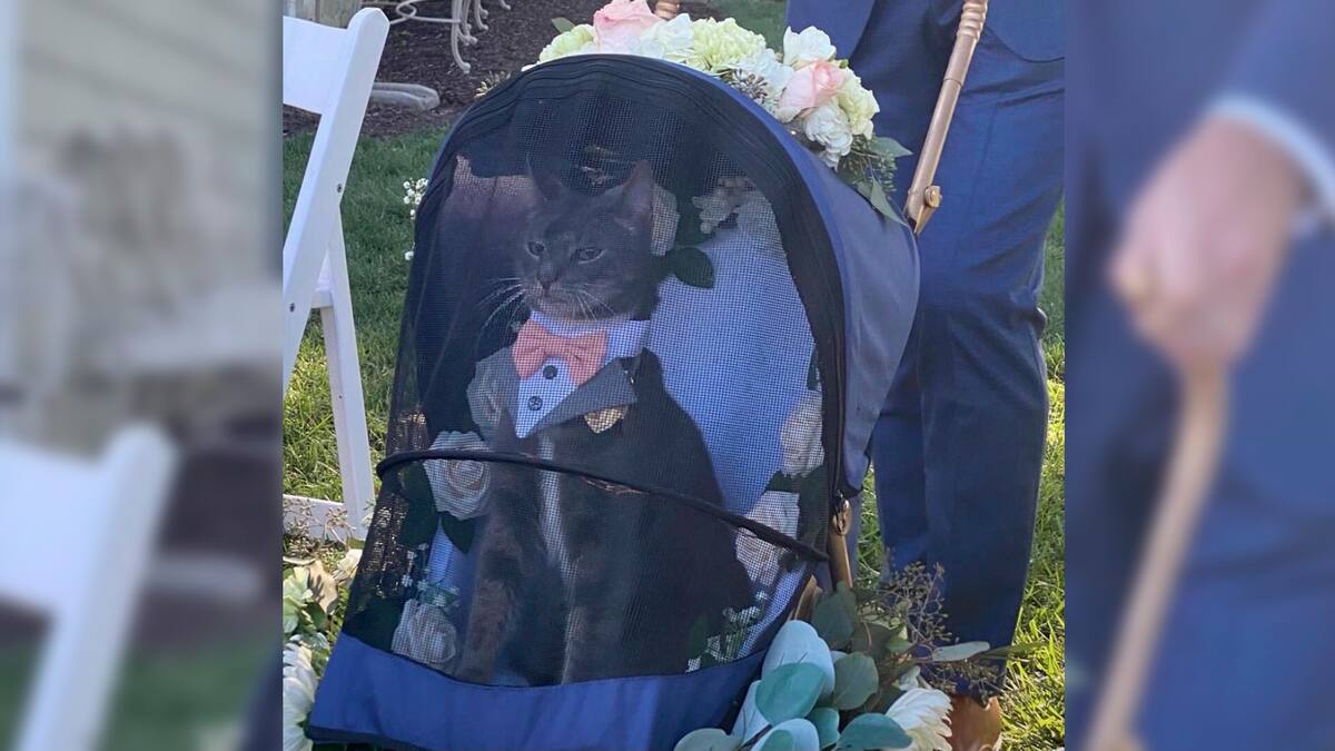 El periodista, quien ejercía de padrino en la boda, también era el encargado de escoltar al gato hasta el encuentro con los novios.