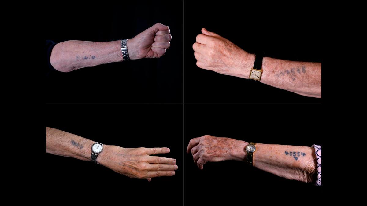 Con los años, la tinta ha ido perdiendo color, la piel está arrugada, los tatuajes se camuflan entre los pliegues del tiempo, al igual que la memoria colectiva del Holocausto del que son los últimos testigos, los últimos supervivientes, las últimas voces de un infierno que pone en duda alguna retórica antisemita.
