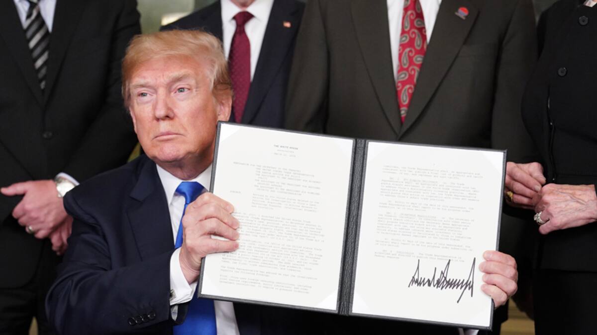 El presidente Donald Trump firmó en la Casa Blanca una resolución que orienta a su representante de comercio a elaborar en 15 días una lista de productos chinos cuya importación a Estados Unidos pasará a ser objeto de pesados aranceles.