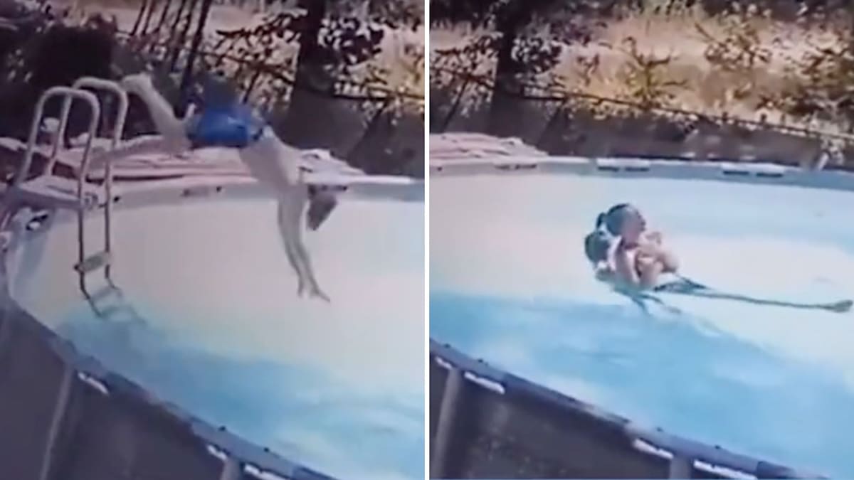 En las imágenes se observa cómo el niño se lanzó a la piscina, cargó a Lori Keeney y la llevó hasta la escalera manteniendo la cabeza de su madre fuera del agua. Luego, esperó un momento para que su abuelo lo ayudara a auxiliar a la mujer.