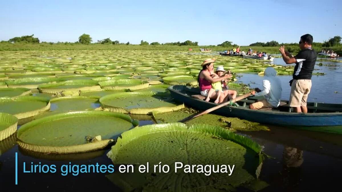 Una pequeña bahía sobre el río Paraguay se ha convertido en los primeros días de enero en un improvisado parador turístico para contemplar los Yacaré Irupé, lirios gigantes de hasta más de metro y medio de diámetro que aparecen cada cuatro años en temporada estival.