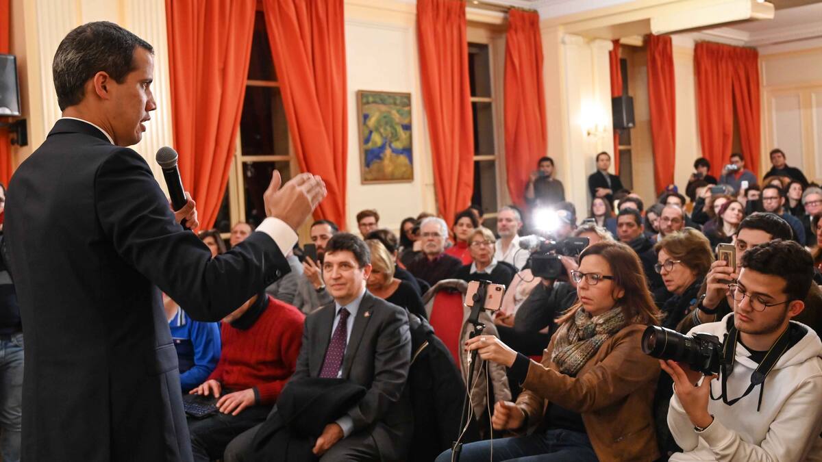 Llegado en medio de una gira europea, a Guaidó lo acompañaban en Madrid simpatizantes y opositores venezolanos radicados en la capital española, como Lilian Tintori, esposa del líder Leopoldo López refugiado en la residencia del embajador español en Caracas, y Antonio Ledezma, exalcalde de Caracas.