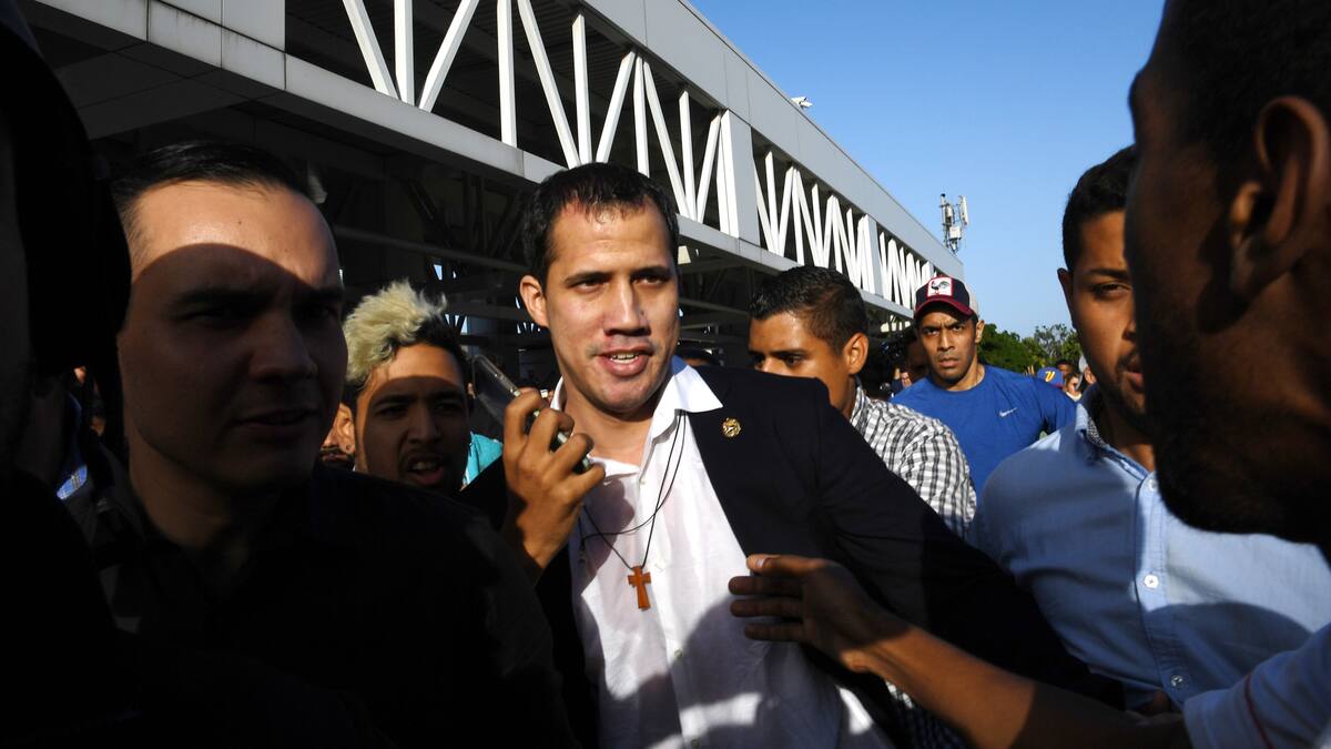 Guaidó, de 36 años, había abandonado el país clandestinamente el 19 de enero, pues tiene una prohibición de salida por varias causas judiciales. A su llegada, publicó una foto suya frente a un funcionario de migración con la frase 'en casa'.