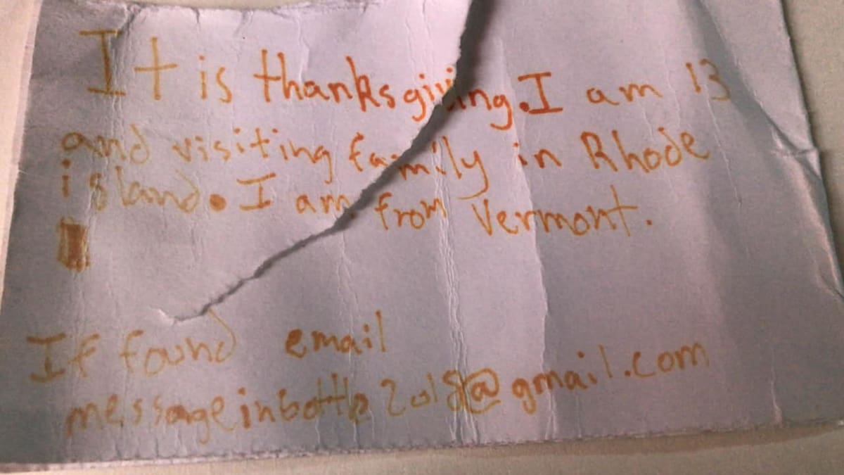 'Es Acción de Gracias. Tengo 13 años y estoy visitando a mi familia en Rhode Island. Yo soy de Vermont. Si se encuentra, envíe un mensaje de correo electrónico a messageinbottle2018@gmail.com', era el mensaje en la botella, señala el diario.