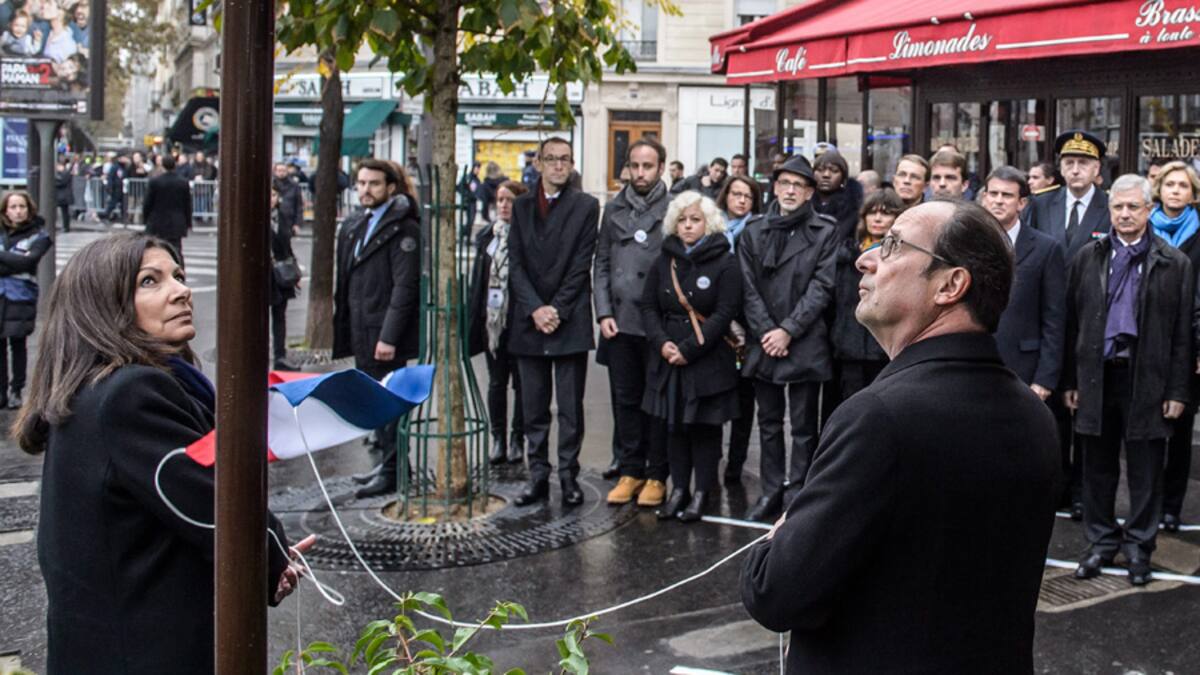 El presidente francés, François Hollande, finalizó en la sala Bataclan las conmemoraciones oficiales celebradas este este sábado en los diferentes escenarios de los atentados yihadistas que hace un año causaron la muerte de 130 personas y heridas a varios cientos.