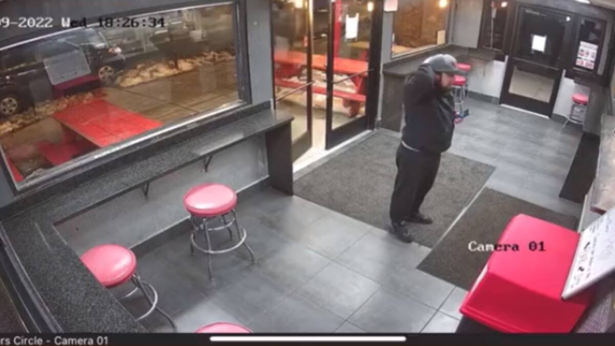 En él se ve al hombre entrar al restaurante y cruzar palabras con empleados que estaban detrás del mostrador.