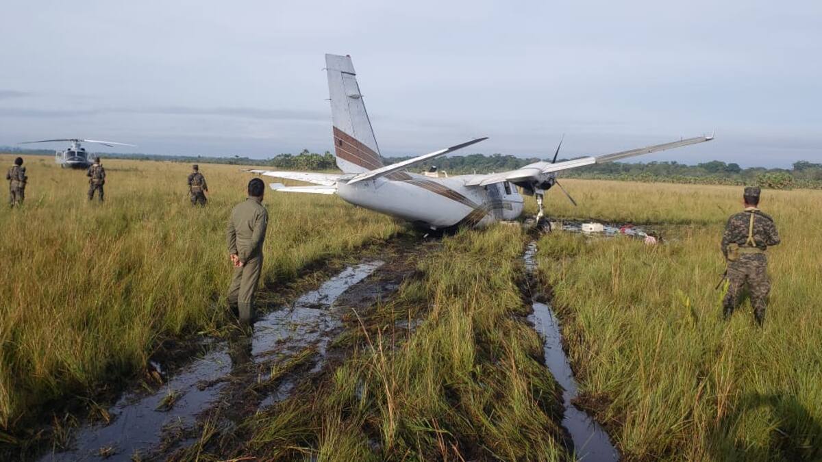 El bimotor, procedente de Venezuela, se estrelló y fue interceptado el domingo en un área clandestina de aterrizaje en el sector de Aguas, donde se registró un enfrentamiento entre militares y grupos criminales, sin causar heridos, explicó.