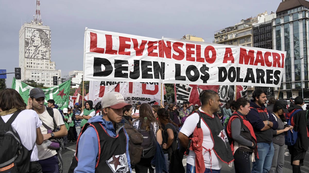 Pero María Belén Blumett, una camarera de un casino que participaba en la manifestación, dijo marchar 'en rechazo de lo que hace (el presidente) Mauricio Macri contra los trabajadores, con los pobres que hay, con la gente que no puede comer, con los despidos que hay'.
