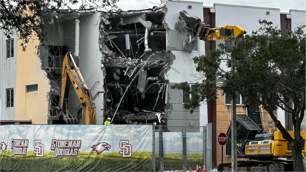 La demolición de la estructura de tres pisos, que ha estado cerrada desde la masacre y que sirvió de evidencia en 2022 en el juicio contra el agresor, Nikolas Cruz, durará varias semanas.