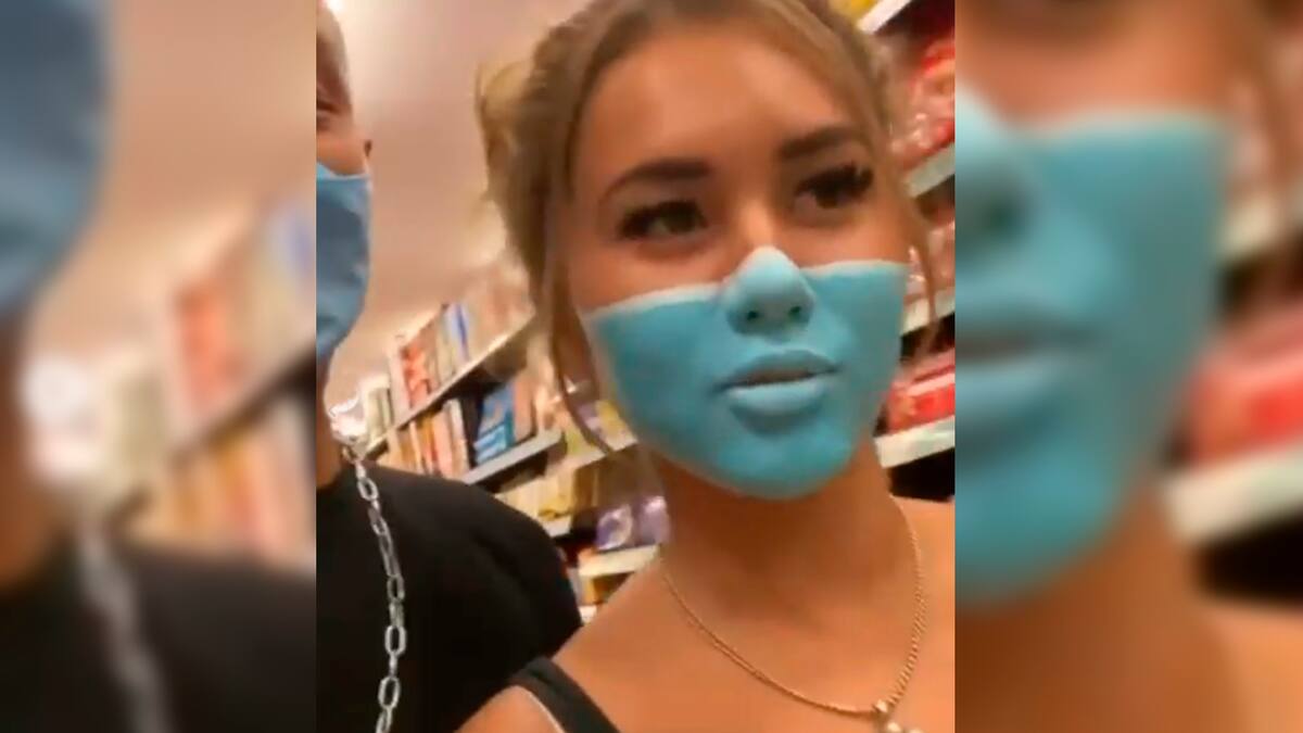 Luego de su fallido intento la 'influencer' decidió pintarse con maquillaje una máscara falsa con la que pudo pasar desapercibida por las autoridades y clientes que se encontraban en el establecimiento.