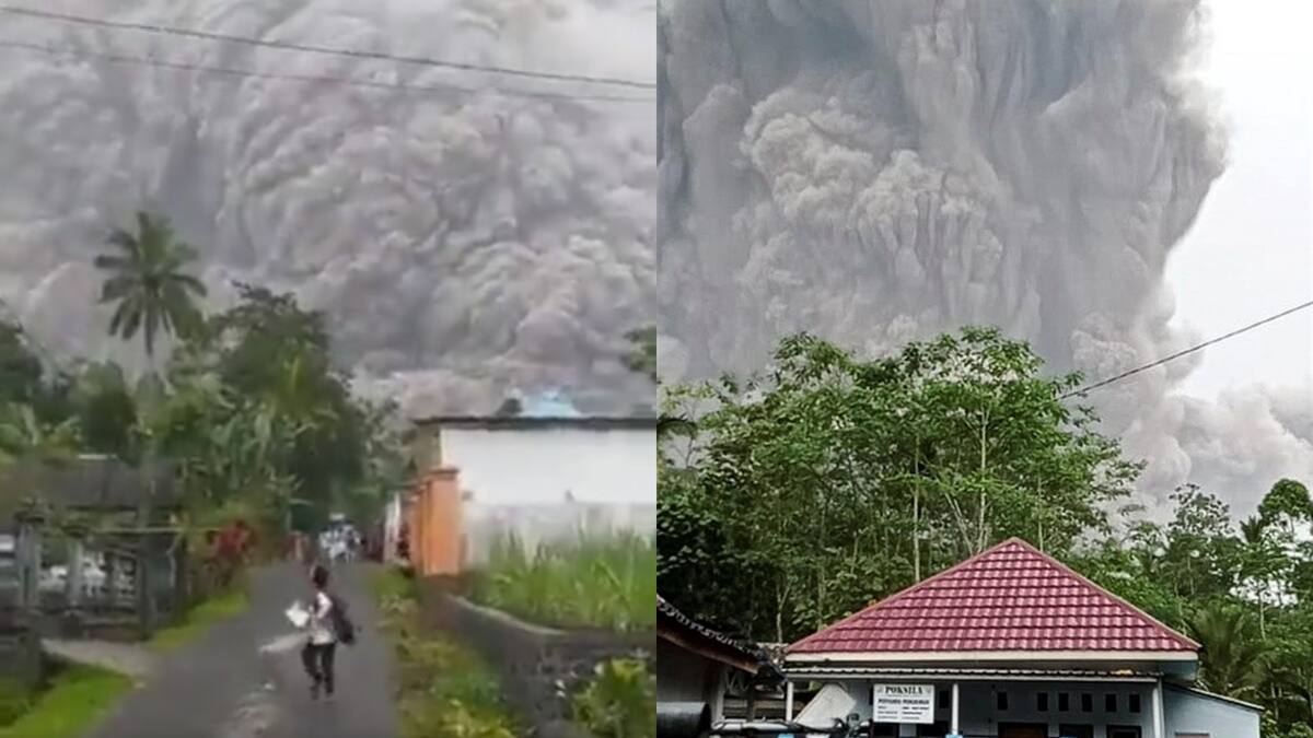 Una serie de vecinos de la población de Lumajang han huido a toda prisa mientras a sus espadas avanza una enorme nube de humo y ceniza, según uno de los vídeos publicados en las redes sociales por los testigos de la explosión del Semeru, de 3.676 metros de altura y uno de los volcanes más activos del país.