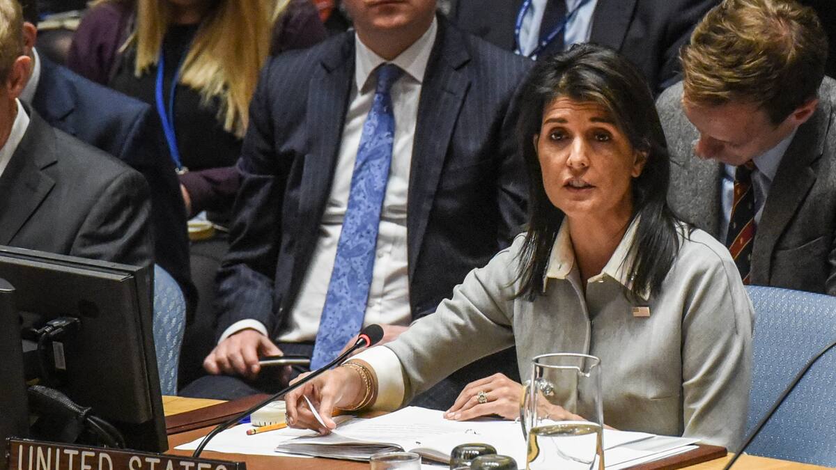 'Naciones Unidas ha hecho más daño a las posibilidades de una paz en Oriente Medio que hacerla avanzar', afirmó la embajadora estadounidense ante la ONU, Nikki Haley, al participar en una sesión del Consejo de Seguridad de la ONU.