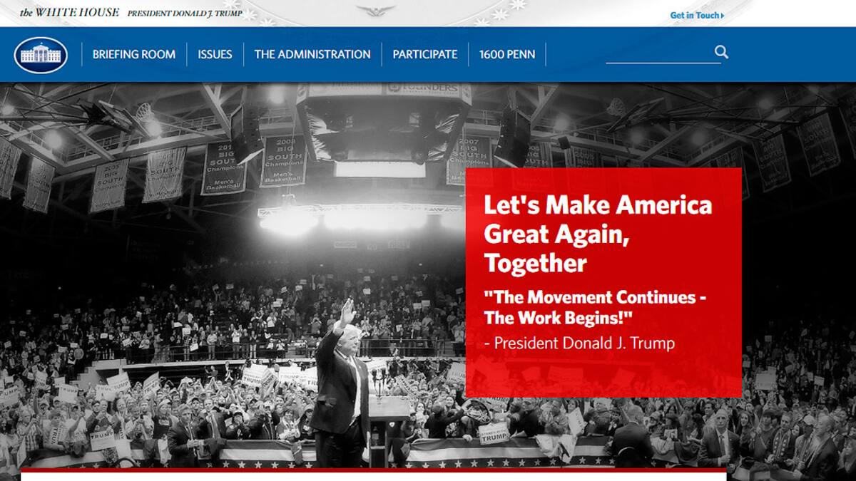 La página web de la Casa Blanca cambió hoy por completo poco después de que Donald Trump asumiera la Presidencia de EEUU, con la supresión de las referencias al cambio climático y la inclusión de algunas de las promesas de campaña del magnate como la construcción de un muro fronterizo con México.