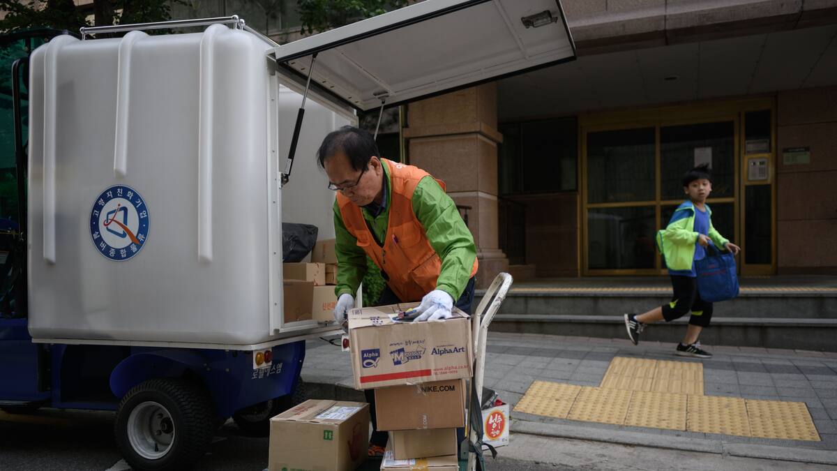 En teoría Park Jae-yeol, de 71 años, tendría que haberse jubilado hace 11 años, pero como las pensiones son bajas, se ve obligado, como un millón de surcoreanos, a seguir trabajando. Reparte paquetes seis días por semana.